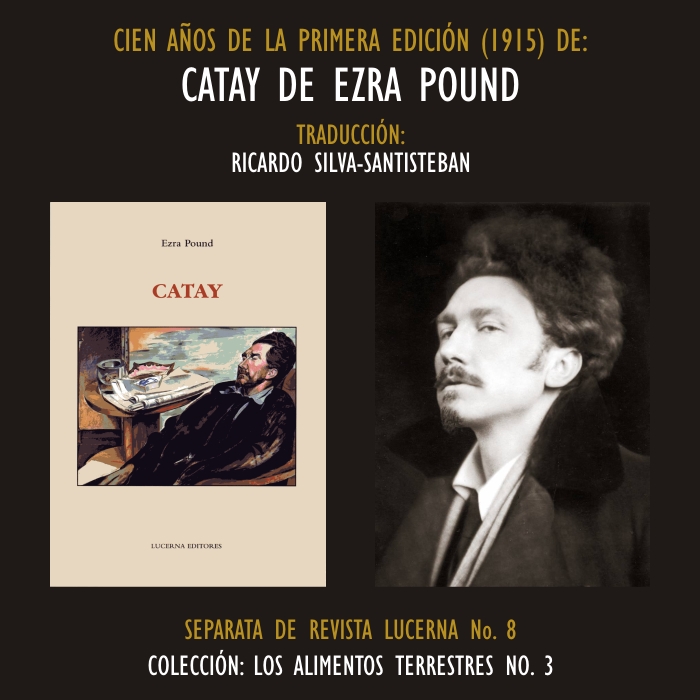 Con el octavo número de revista Lucerna, se publica el libro de poemas Catay del poeta norteamericano Ezra Pound, con traducción y prólogo del poeta y editor Ricardo Silva-Santisteban. Este libro es la tercera entrega de la colección «Los alimentos terrestres» de clásicos universales, y se publica en conmemoración de los cien años de su primera edición (1915). Este libro-separata se entrega gratuitamente con el octavo número de Lucerna. Silva-Santisteban señala en el prólogo: «Debe reconocerse también a Cathay el haber impulsado el acercamiento a la poesía china desconocida todavía en Occidente por falta de un gran intérprete que, como Pound, mostrara ese rico universo en todo su primor y exquisitez revelando a lectores asombrados una de las tradiciones más ricas con que cuenta la literatura universal. Con la publicación de Cathay, Pound recibió el reconocimiento de crítica y de público. Cathay es, sin lugar a dudas, su libro más hermoso y uno de los que se puede releer con más placer».