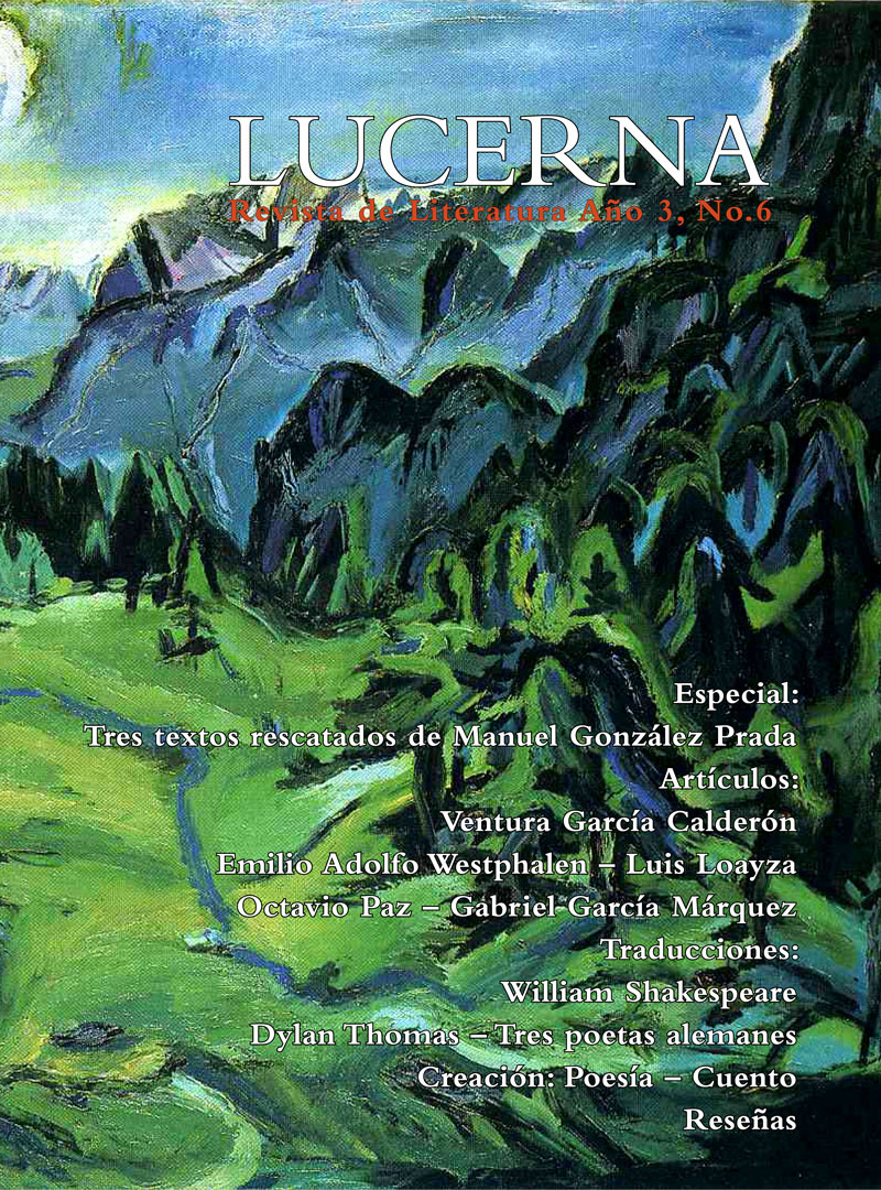 Entre los muchos centenarios de este año, hemos querido rendir un modesto tributo a poetas como Georg Trakl, en nuestro número anterior, y a Dylan Thomas en el presente, con la traducción de cinco de sus poemas. Reservamos el homenaje central de esta edición al autor que, después de olvidadas las modas críticas, continuará siendo uno de los pilares vivos de la literatura occidental: William Shakespeare. Lo hacemos bajo la convicción de que la apuesta por la lectura de un clásico desde una perspectiva moderna puede ser de mayor utilidad en la actualidad que la ansiedad contemporánea por crear figuras cuya obra aún no ha superado la prueba del tiempo. Pero ello no significa que deba renunciarse a la búsqueda de nuevos creadores, como lo atestigua nuestra sección de creación. Antes bien, cada nuevo número de Lucerna significa un renovado y pertinaz intento de alcanzar un imposible equilibrio entre lo nuevo y lo clásico.